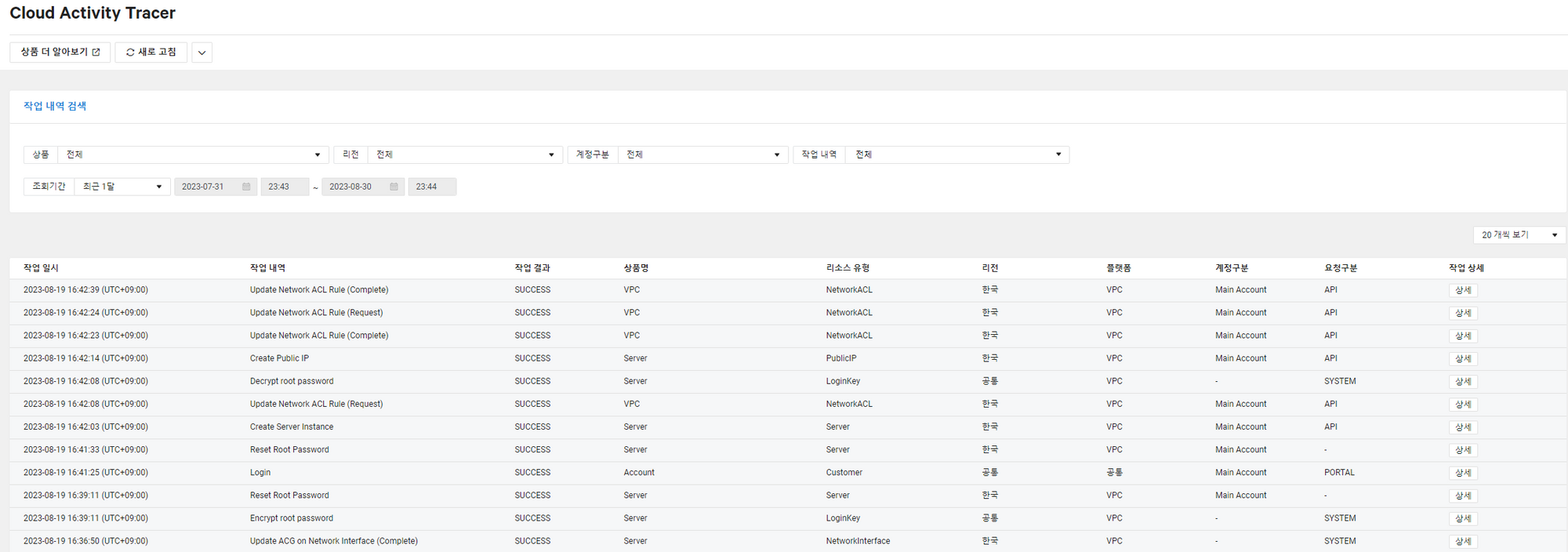 클라우드 액티브 트레이서는 네이버 클라우드 플랫폼의 서비스를 사용하며 발생하는 모든 활동을 로깅하여 보여주는 서비스로 어떤 계정이 어떤 리소스를 만들었는지 추적하고 (로그인 까지!) 상세한 내용까지 보여주는 서비스이다. 계정 정책을 통해서 지정한 내용이 있다면 계정구분을 통하여 해당 계정의 액션 접근을 모두 기록하여 시스템 관리자가 파악할 수 있다. 또한 예를 들어 콘솔은 물론, 테라폼 등을 통한 프로비저닝이 있을 경우 API 를 통한 생성 기록을 남겨 이를 확인할 수 있다.
