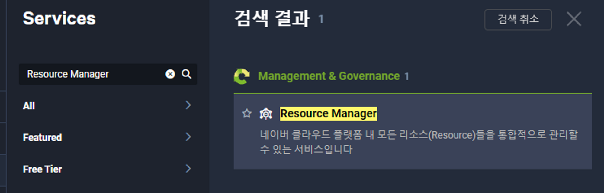 리소스 매니저는 네이버 클라우드 플랫폼 내 모든 리소스들을 통합적으로 관리할 수 있는 서비스로 전체 리소스 조회 및 검색, 리소스 그룹을 논리적으로 지정하여 서비스별로 리소스를 감시하고 태깅을 지원하여 관리자에게 운영 편의성을 준다.
